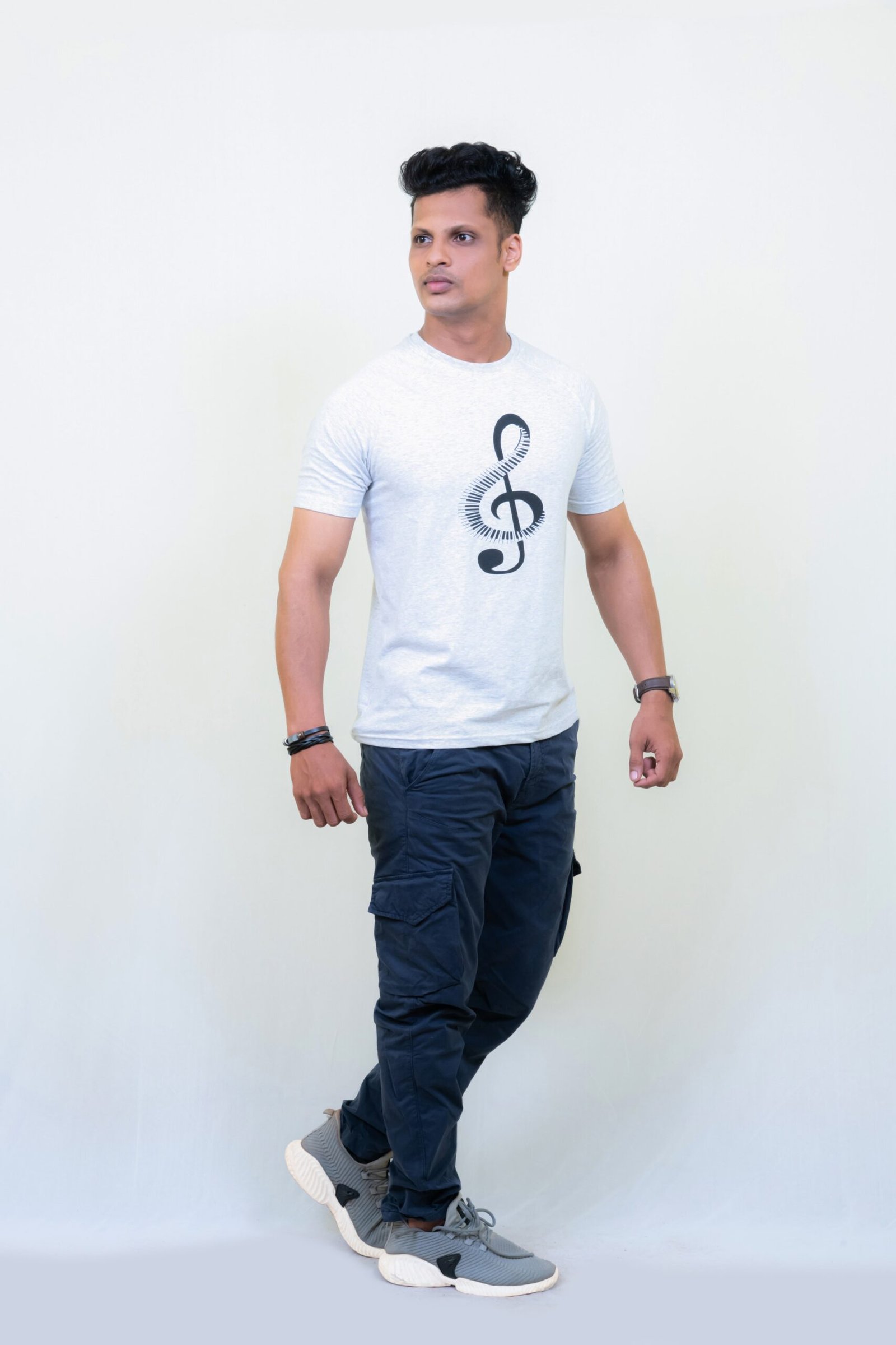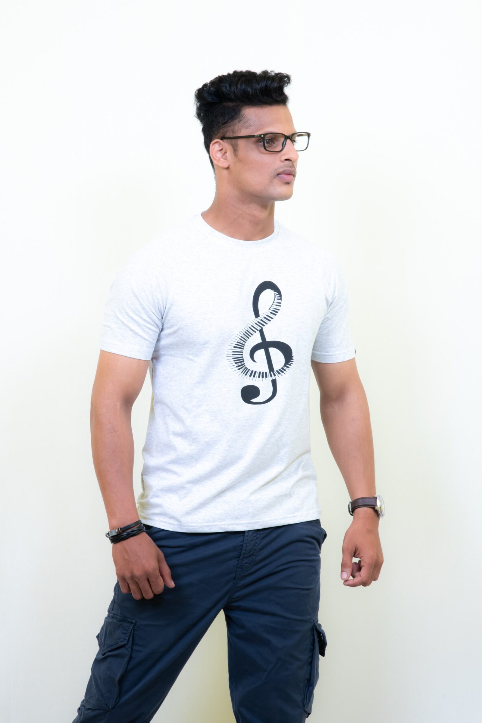 The Grey with music symbol print make this T-shirt outstanding and cheerful. With the comfort feel of the soft cotton and breathable fabric it is must have T-shirt.